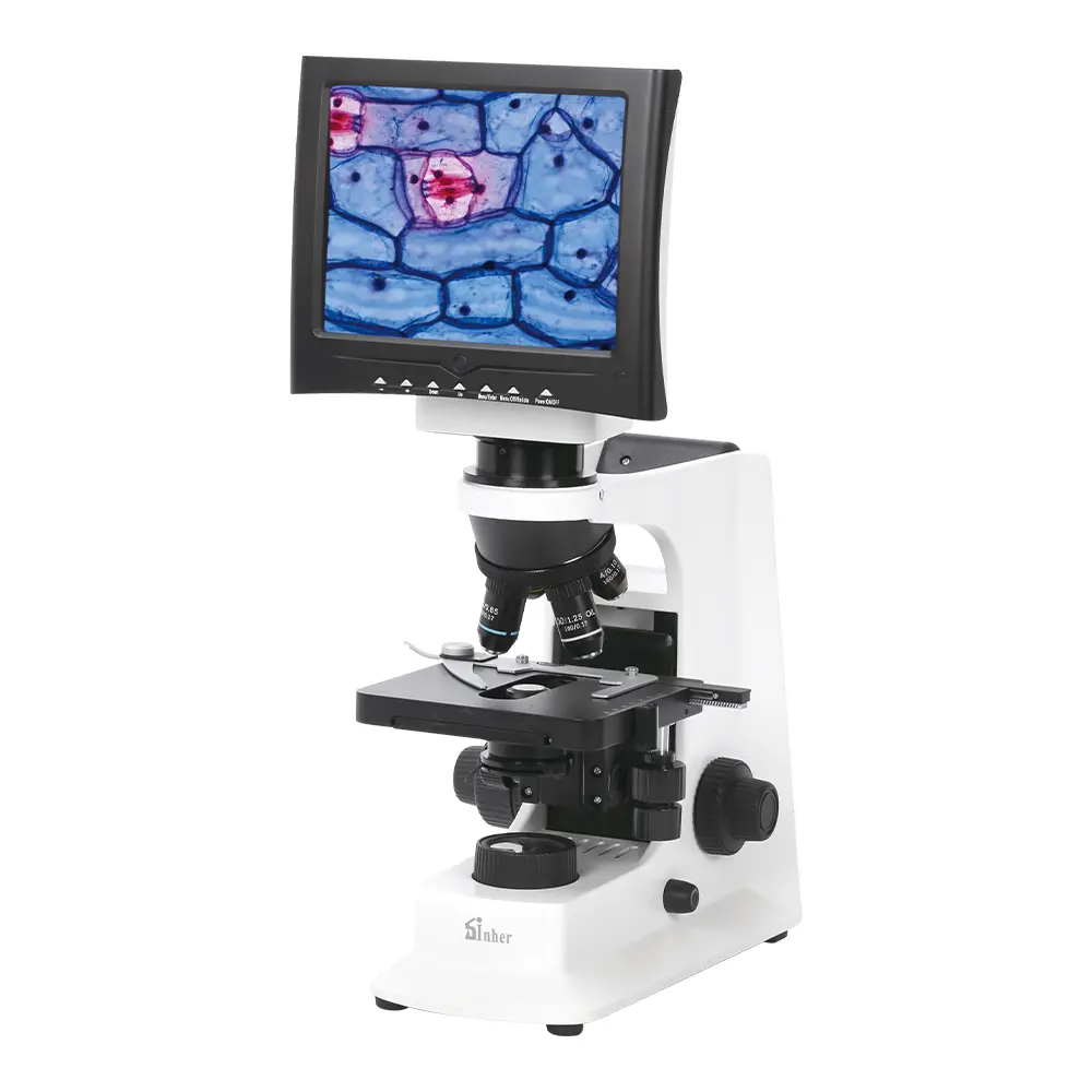 Microscopio Estereoscópico (A) El microscopio A corresponde a un modelo estereoscópico, diseñado para observar muestras tridimensionales a baja magnificación. Es ideal para inspección general, manipulación de objetos grandes y trabajos donde se requiere profundidad visual. Microscopio Óptico Compuesto (B) El microscopio B es un microscopio óptico compuesto, el cual utiliza un sistema de múltiples lentes para lograr mayores aumentos y una imagen más nítida. Es fundamental en el análisis de células, tejidos y microorganismos dentro del laboratorio clínico y la investigación biológica. Microscopio de Inspección o Metrológico (C) El microscopio C es un equipo especializado en inspección industrial o metrología, equipado con sistemas de iluminación avanzada y plataformas motorizadas. Permite analizar con gran precisión superficies, materiales y estructuras complejas. Integración en Microscopios Modernos La combinación de las capacidades de estos diferentes microscopios da lugar a equipos modernos más avanzados, como el modelo digital mostrado en la parte inferior. Estos sistemas integran óptica de alta resolución con procesamiento de imagen en pantalla, facilitando análisis más precisos, cómodos y eficientes en múltiples áreas científicas y técnicas.